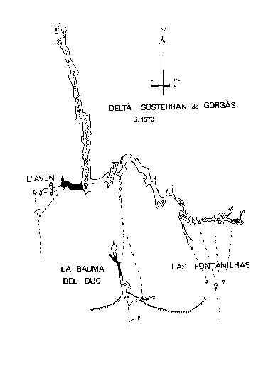 Nos explorations à l'aven-évent ont donc révélé un vaste delta souterrain de 1535m de galeries, diffluant vers les cavités du Duc et du Thalweg des Fontanilles.