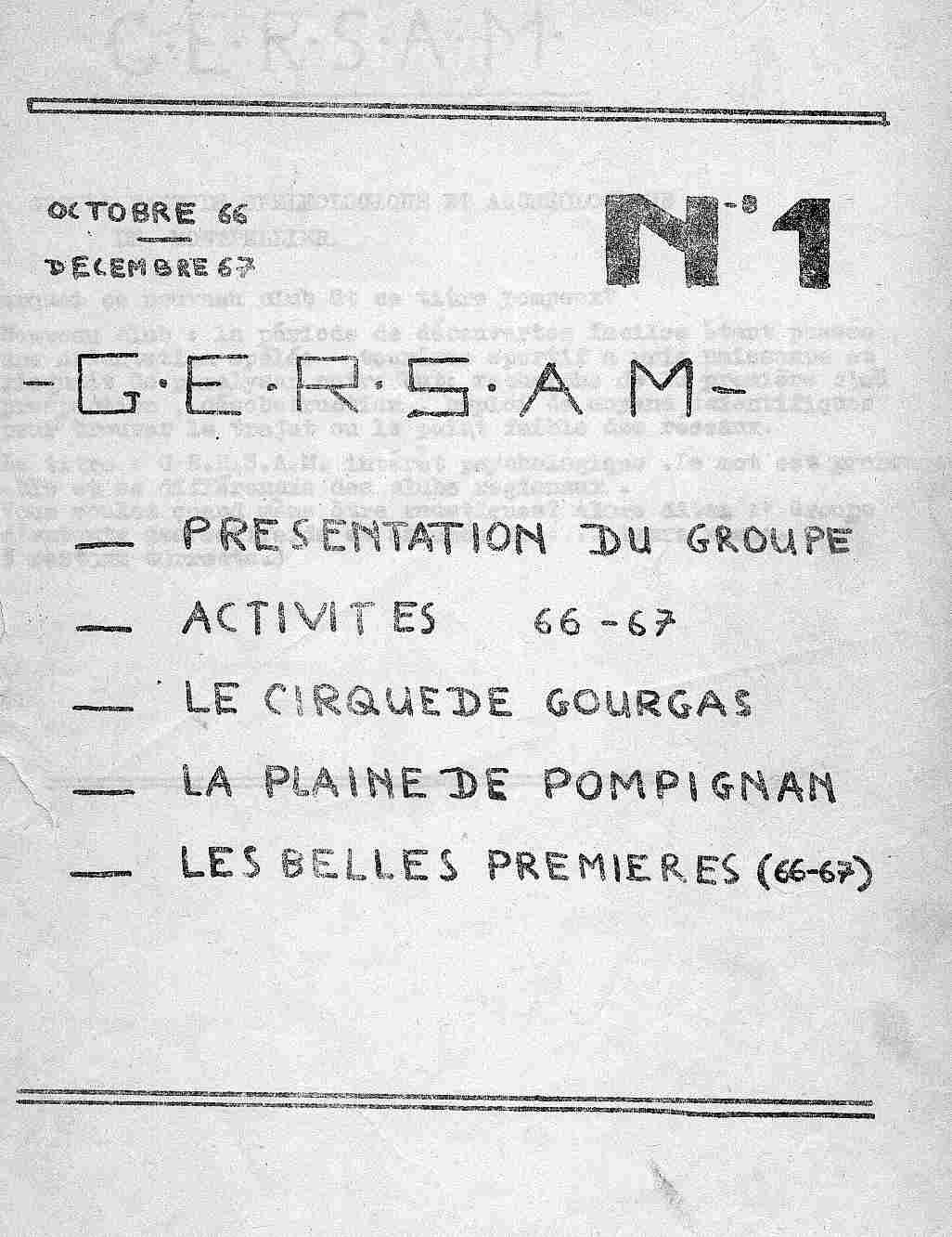 Voici la reproduction de ce vénérable bulletin N°1 du GERSAM