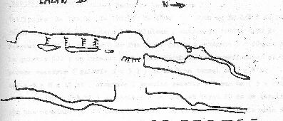 Aven N°l : Le chemin sert de drain en période pluvieuse pour un ruisselet de 2 L/s qui se jette dans cet aven légèrement en contrebas. Bouche de 4x 4m . A - 2 éboulis au N étroiture et à - 5 diaclase NO. L'eau arrivant du S s'infiltre au NO dans un goulet impénétrable.