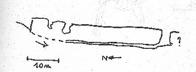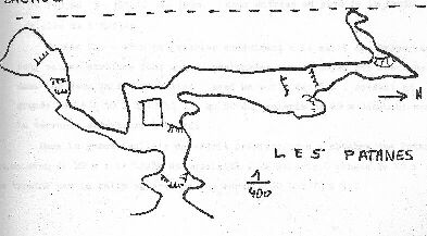 Entrée Sud: Bouchée par la terre au bout de quelques mètres. Plus au S dans la falaise plusieurs entrées permettent de retrouver la suite : laminoir de 20m de long SN sur 4m de large et 1,20 m de haut.