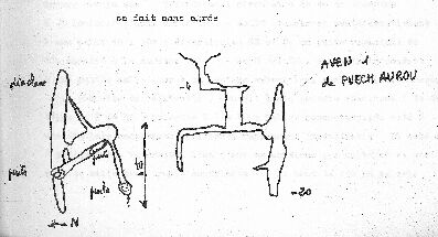 Aven N° 2 de Pech-Aurou (avenc 2 de Puèg-Aurós) (Ferrieres X= 720,23 Y= 175,03). A 70m de la route presque sur la limite communale. Tube de 1,3m x 1,3m. P : -3.