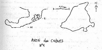 - au SE : couloir en pente aboutissant à une salle 10m x 10m . Diverticules SE et O. Un puits remontant de 11m aboutit en surface.