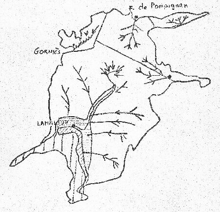 draine la partie au Nord de la ligne mais dans l'axe du Synclinal doit etre en rapport avec le réseau noyé en général