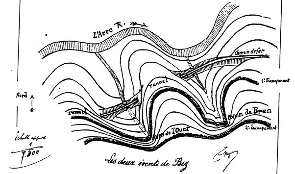 Ce phénomène, qui étonna si vivement les contemporains. nous paraît devoir s'expliquer de la manière suivante : 1° Éboulement intérieur ayant déterminé la formation d'un barrage en amont duquel les eaux souterraines se seraient accumulées remplissant toutes les cavités, anciennes ou récentes; 2° Le niveau supérieur du barrage étant atteint, la rivière s'écoule naturellement par dessus ce seuil improvisé': 3° Rupture et entraînement du barrage, avant pour conséquence l'abandon de toutes les galeries momentanément occupées par l'eau. Aujourd'hui, la rivière vient d'être captée à Navacelle, à quelques kilomètres en aval de sa source. Ses eaux canalisées jusqu'à Madières servent à actionner de puissantes machines électriques qui vont transporter jusqu'à Nîmes et Montpellier la lumière et l'énergie motrice. Le problème des origines de la Vis est donc un des plus captivants que présente l'étude de nos immenses causses cévenols, jusqu'à maintenant si mystérieux et si peu connus. C'est à sa solution que nous avons consacré la majeure partie de nos recherches. Par la raison que les eaux de la Foux paraissaient jaillir du flanc méridional de la gorge, la plupart des auteurs qui ont écrit là-dessus ont une tendance à placer son bassin d'alimentation dans les départements de l'Hérault et de l'Aveyron. Nous allons démontrer qu'il n'y a dans cette hypothèse qu'une très faible part de vérité et que l'origine de la Vis doit être principalement recherchée dans le Gard. Tout d'abord, observons que la Foux ne jaillit point au sein d'une cluse fermée comme la Fontaine de Vaucluse, mais qu'elle se trouve sur le parcours d'une vallée profonde qui se poursuit en amont sans autre modification que l'absence complète de tout cours d'eau. D'autre part, nos investigations nous ont démontré qu'au lieu de jaillir de la rive droite, les eaux remontent des profondeurs du sol par les fissures mêmes du lit du Vissec. Ainsi notre source se présente dès l'abord avec le caractère très net d'une résurgence ou réapparition. Les observations suivantes ne feront que confirmer cette manière de voir. Étudions le cours des deux grandes vallées qui s'étendent en amont de la Foux. La Virenque naît des pentes occidentales du Saint-Guiral. Jusqu'à Sauclières, c'est un ruisseau abondant qui arrose de verdoyantes prairies. Après ce hameau, elle se perd dans les dolomies et, pendant 25 kilomètres, son lit n'a d'autre aspect que celui d'un large chemin pierreux où la marche devient singulièrement difficile. Nous en dirons autant du Vissec qui tombe en cascades sur les pentes méridionales du Saint-Guiral et se perd en aval d'Alzon. Son canyon est encore plus aride et plus désert que le précédent. Ce n'est qu'à une distance de 6 kilomètres environ du confluent que la Foux vient brusquement ranimer ce triste paysage. Que sont devenues pendant ce temps les eaux tombées du Saint-Guiral?... On a prétendu qu'elles allaient reparaître dans la vallée de l'Arre, aux évents de Bez : c'est là une absurdité géologique. Pourquoi ne pas supposer, a priori, que les eaux actuelles suivent une direction semblable à celle qu'elles ont eue depuis le début des temps quaternaires?... Pour se rendre compte de la direction des dérivations souterraines, l'observation nous tt depuis longtemps démontré qu'il fallait étudier le régime des cours d'eau pendant les trois phases suivantes : lit d'été. lit majeur et lit d'hiver. Remarquons tout d'abord que les pertes des deux rivières, à Alzon et à Sauclières, ne se produisent point d'une façon absolument brusque. On observe une diminution progressive des eaux qui disparaissent, puis reparaissent alternativement pendant plus d'un kilomètre. En temps d'inondation, les canaux souterrains ne suffisant plus à écouler le trop-plein, elles remontent à la surface et occupent toute la largeur du lit aérien. Lorsque le retrait s'effectue, la rivière offre un curieux objet d'étude. Le courant ne cesse pas brusquement: il se sectionne., offrant une alternance de pertes et de réapparitions qui indiquent d'une façon certaine la proximité des canaux souterrains.