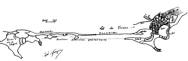 Le tout se termine, après environ 500 mètres de développement, par un petit cul-de-sac dont toutes les fentes sont obstruées par une sorte de boue liquide. D'après tout ce que nous venons de dire, il convient de voir dans cette grotte le confluent de deux cours d'eau souterrains d'époque quaternaire, les mêmes que ceux que nous voyons aujourd'hui. Ainsi il est démontré par cette exploration que toutes les eaux pluviales drainées par le ruisseau des Mourgues convergent dans la direction de la Vis souterraine. Il me resterait à citer, dans le même département, et sur les bords de la Virenque, un grand nombre. d'avens plus ou moins profonds qui sont aussi tributaires du même cours d'eau souterrain, mais l'étude n'en a pas encore été faite.