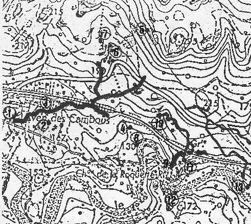 Boulidou de la Roquette (Conqueyrac 725,03-185,65-140m) A 100m NNW de l'exsurgence N°1 du même nom, dans un thalweg, 5m E d'une murette. 5m au dessus du lit du Vidourle. Le courant d'air à 16°C qui en sortait le 16-9-85 (température extérieure 26°C) suggère une relation avec la galerie du laminoir des Cambous, qui se termine à 200m de là. Mais le déblaiement ne donne accés qu'à une fissure impraticable sans continuation évidente. Par contre, lorsque les Cambous sont occupés par un torrent actif, en hiver, et que leur bouche ne "souffle" plus, un courant d'air aspirant s'établit dans ce boulidou, entre celui-ci et les entrées amont surélevées encore non retrouvées de la galerie Morizot: ceci témoigne du fait que l'extrême-aval des Cambous est exondé même lorsque le début (étroit) de l'aval siphone.