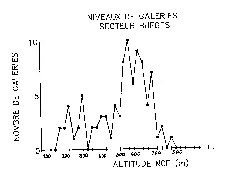 e - à 350 et 400, deux importants niveaux de galeries dans la Leicasse et le Grelot.