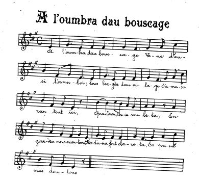 On ne connait ni l'origine de l'Ombra dau bouscage ni l'époque de sa composition. Cette gracieuse cantilène est cependant aussi courante en Languedoc que lo Rei n'a'na fonteta, l'Escriveta, et Ma mia.