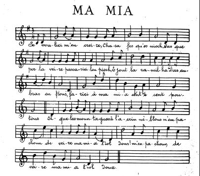 Ma mia, n'est autre que l'air de Gaston Fébus, retourné et complété par Charles Gros, en 1891 ; si l'air lui-même est de provenance pyrénéenne, la poésie populaire de notre ville ne l'a pas moins adopté d'assez bonne heure.