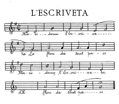 Le sujet du chant de l'Escriveta semble avoir pour base l'invasion des Sarrasins en Provence, car il fourmille de details sur la descente des navires arabes le long des côtes méditerranéennes de la France.
