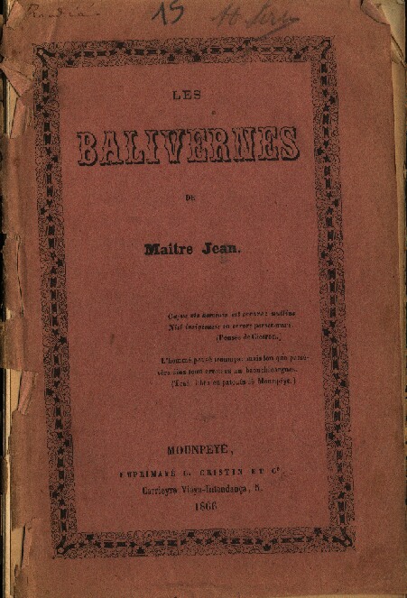 (44) Sur les cours coculaires montpelliéraines, cf. Enric de Bouquet, " Les divertissements carnavalesques de Montpellier ", Armanac Mount-pelieirenc, 1900-1901, p. 68-70, 73-74, 74-80. Et Jules Troubat, Nouvelles gaietés du terroir. Essai sur les Cours coculaires, Paris, Librairie de la Province, 1896. L'inventaire et le texte des recueils composés pour les cours coculaires montpelliéraines des années 1830-1850 figureront dans un ouvrage en préparation.