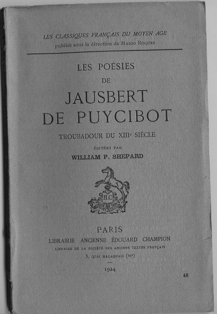 William P. Shepard, Les poésies de Jausbert de Puycibot, Paris 1924