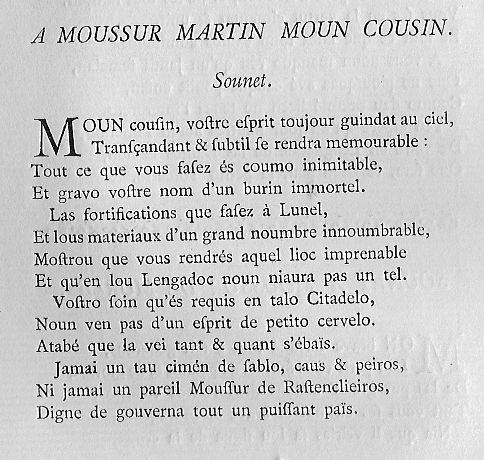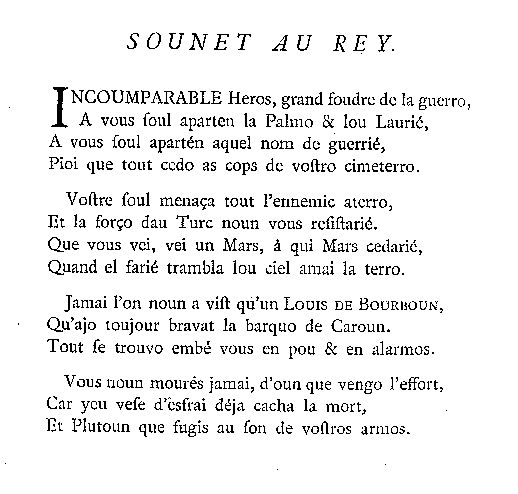 Sonet a monsur de Vena, luoctenent coronèl dau regiment de Normandia