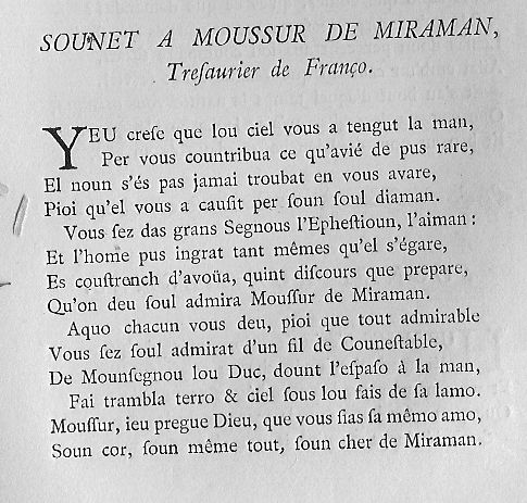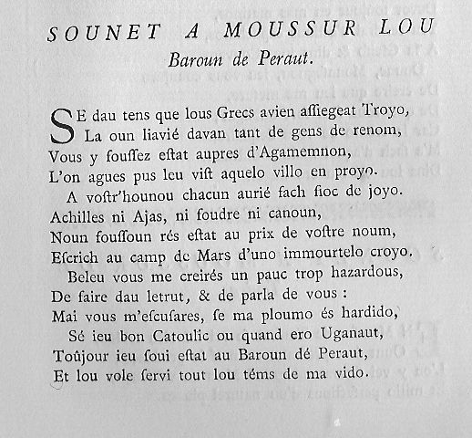 Sonet a monsur lo baron de Castras sus son nom de La Croix
