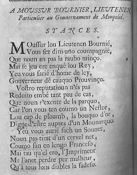 A monsur Bornièr, luòctenent particulièr au governament de Montpelhièr: stances.