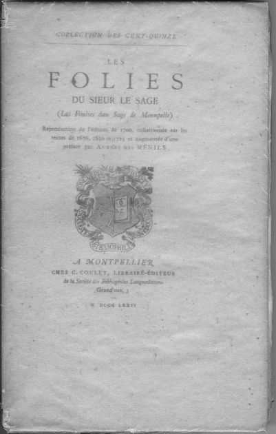 "La vie et l'oeuvre de celui qu'on appelle le Sage de Montpellier ont été longtemps défigurées ou obscurcies par des traditions légendaires. C'est sous le nom de Sage (David ou Daniel) que l'oeuvre a été publiée: Les Folies du sieur le Sage (1636), Las Fouliés dau Sage de Mounpelié (1650), édition reprise en 1725. Même titre en français dans l'édition d'Amsterdam (1700). Le dernier des éditeurs, Aubert des Mesnils, donne l'oeuvre sous le titre français Les Folies de Daniel Sage de Montpellier (1874).