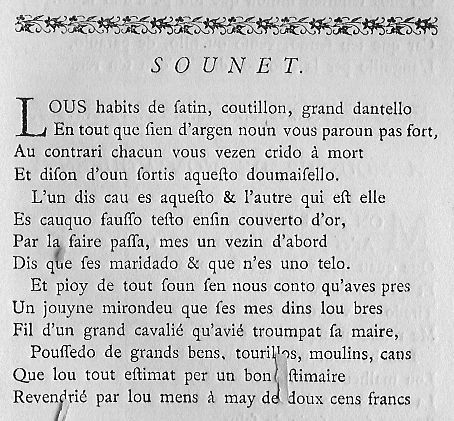 Sonet " Los àbits de satin, cotilhon, grand dentèla"