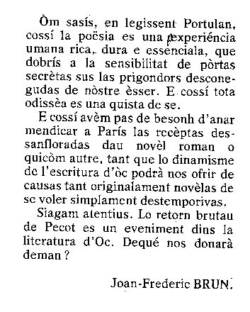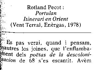 Aquí çò que n'escriviái dins "Aici e Ara", N° 3, mai de 79, pp 57-58. Coma se vei, ne pensave puslèu de ben.