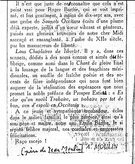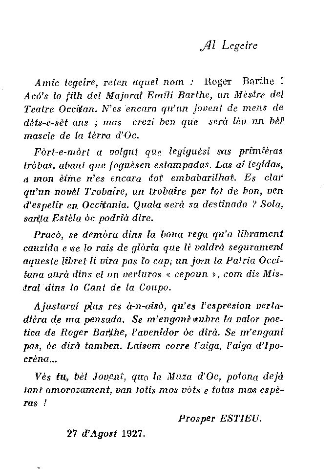 De notar lo prefaci de Prospèr Estieu que profetiza un avenir au jove poèta, coma se vei çai-dejota.