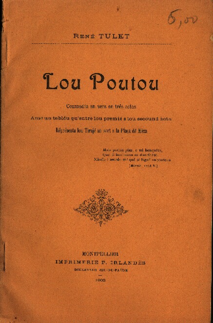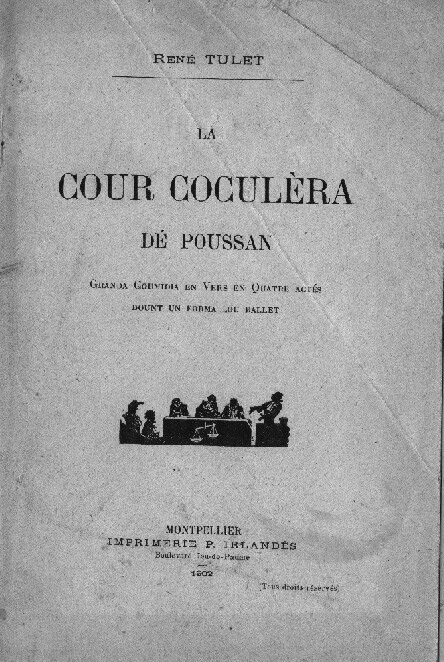 Sas pèças popularas : La Cour coculèra dé Poussan (1902);Lou poutou (1902); Lous dichs e lous redichs (ms, 1908), La Masca (drama en 4 actes e vèrses, 1914), Annou, Frigouleta e Lili (1930), Fenna de cambra e cousinièira (1932), La fenna deputada (1933), una entrevista à la barraca (1934), l'ouncle dau Maro (1934), la court dau carnaval (1938), la crécha das jardiniès au fougau (1938)...