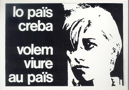 We have seen that after the Second World War there is really no longer hope. The language has stopped being spoken, yet it is still potentially known by most people. A very little group of writers, however, still believes. And produces exquisite poetry and narratives... And, suddenly, at the end of the 60's there's again a revival of Occitan culture, while everybody thinks it's at last dead. This time, that's, quite unexpectedly, under the colours of Mondial Revolution and Marxism-Leninism... Two leaders put Occitan over the public French scene: Robert Lafont and Yves Rouquette. Meanwhile, Ismael Girard, Bernard Manciet, René Nelli, Felix Castan and Max Rouquette re-fund once again the phoenix-like journal "OC", with the aim of still developping its culture at the highest level beside the too simplistic politically driven literature. This was the time of the "Poètas de la descolonizacion" (poets of the decolonization) who screamed their anguish of seeing their culture and their identity totally denied. "Occitania", they said, "un país que vòl viure" (Occitania, a country that wants to live!).