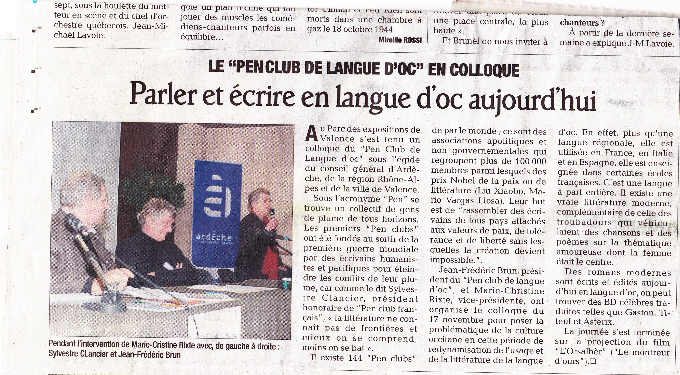 de preveire d’accions comunas. Sylvestre Clancier, president d'onor dau PEN